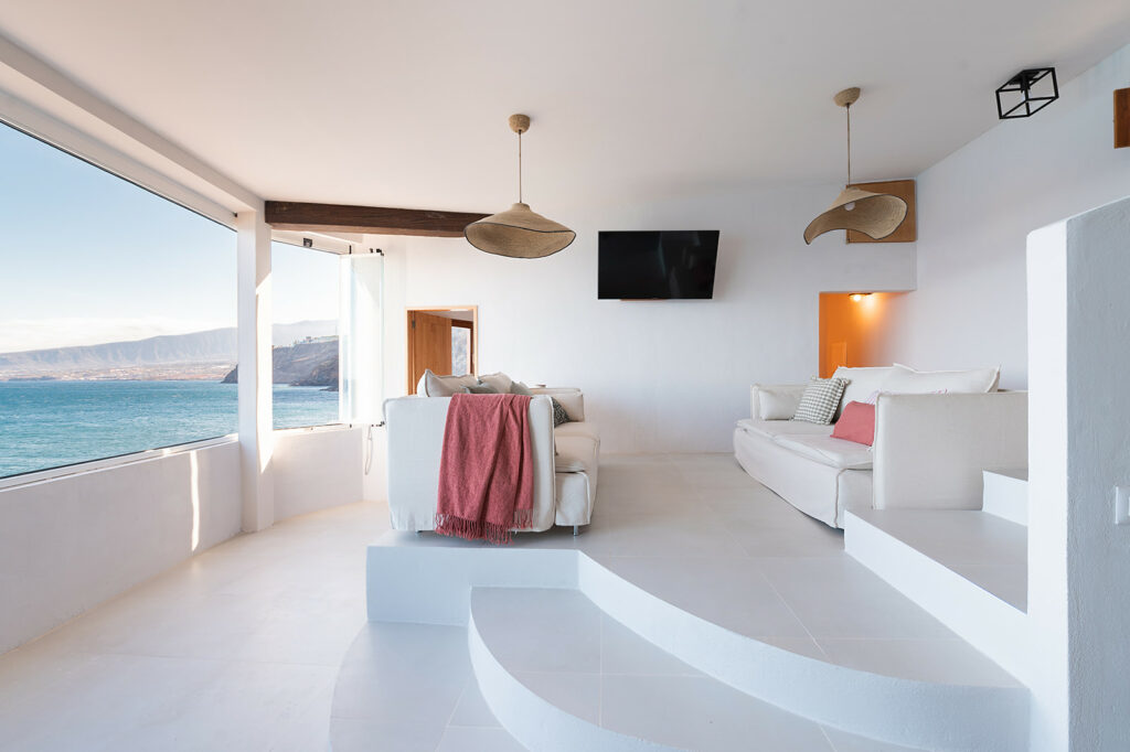 A solo 10 metros del mar, situada en un pintoresco asentamiento pesquero, La Atalaya del Pescador, con sus 3 habitaciones dobles y sus 2 baรฑos, es perfecta para aquellos que busquen una escapada para relajarse, conectar con la naturaleza y descubrir los encantos de la isla. Su amplio salรณn comedor con espectaculares vistas al mar, harรก que tengas la sensaciรณn de estar en un barco en alta mar. Ademรกs, todas las habitaciones de la Atalaya tienen vistas al mar y de repente, por alguna de sus paredes, aparece la propia roca volcรกnica de la isla, al estilo de las casas cueva de la zona.
